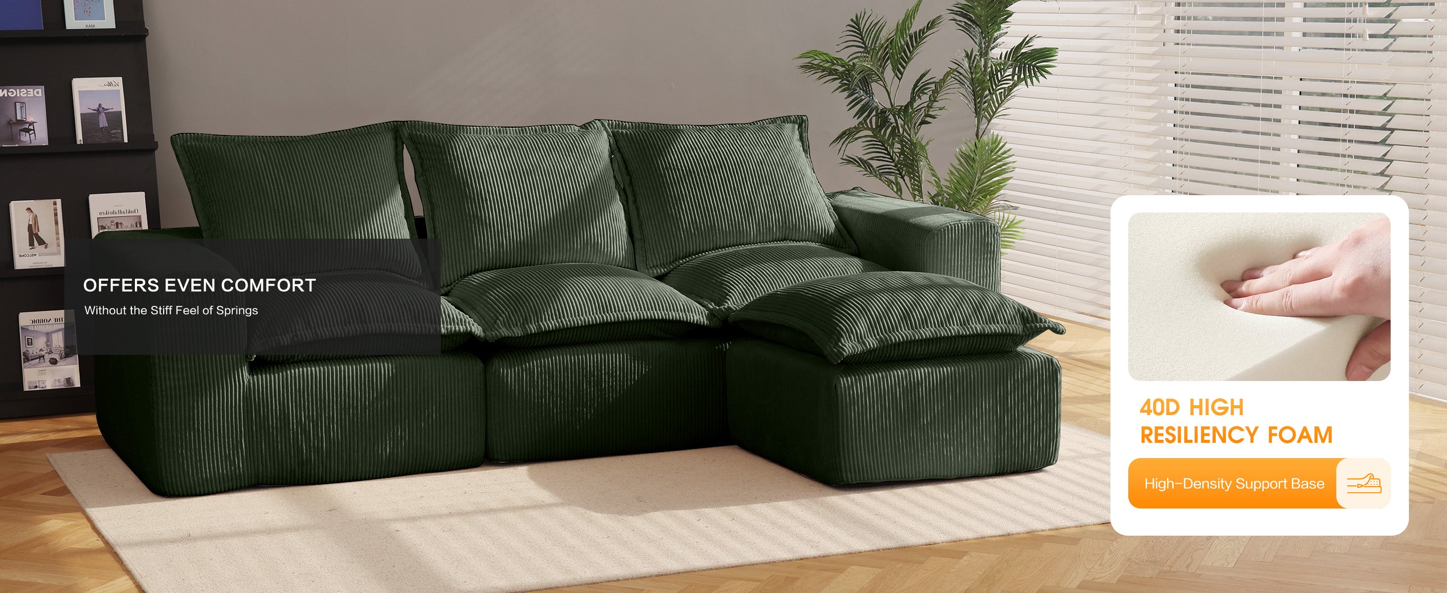 Crafted with 40D high-resilience foam and wrapped in soft, pet-friendly corduroy, every seat offers pressure-free support that feels like floating.